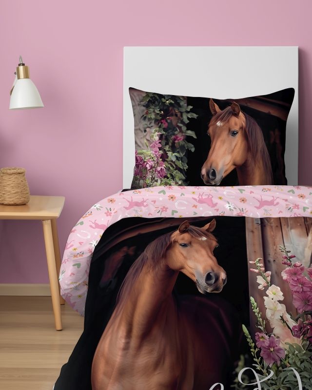 Obliečky „Kôň dobré ráno“ ponúkajú rovnováhu medzi štýlom a pohodlím — kombinujú elegantný dizajn s praktickými vlastnosťami kvalitnej bavlny, čo z nich robí skvelý doplnok do detskej izby.