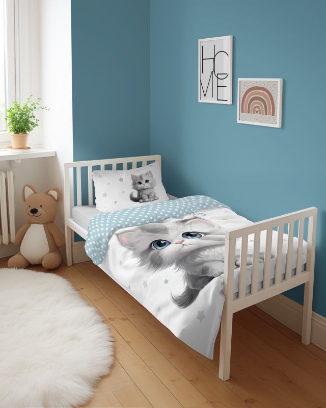 Obliečky „Mačiatko Sweet Dreams“ kombinujú porebné motívy s komfortom kvalitnej bavlny. Sú ideálne do dievčenskej izbičky pre deti, ktoré milujú zvieratá, nežné farby a útulnú atmosféru.