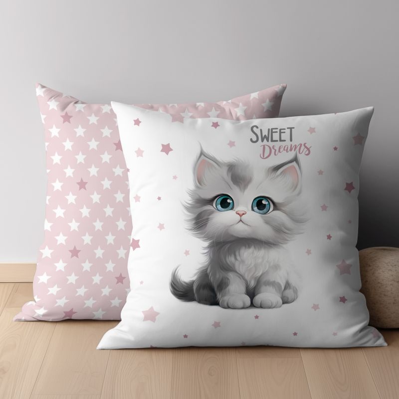 Obliečka „Mačiatko Sweet Dreams“ je ideálnym doplnkom k povlečeniu v rovnakom štýle — spája roztomilý design s praktickosťou a komfortom kvalitnej bavlny.