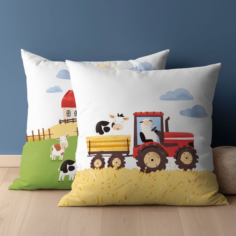 Obliečka na vankúšik s motívom farmy na kopci v červených farbách – rovnaký dizajn ako na komplet povlečenia „Farma na kopci červená“. Na prednej strane nájdete detailný motív farmy s domčekmi, zvieratkami a prírodou, zatiaľ čo na zadnej straně nájdeme traktor. Zapínanie na zips umožňuje jednoduché nasadenie a vyzliekanie obliečky. Materiál z bavlny je mäkký, priedušný a šetrný k pokožke.