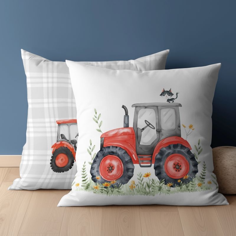 Obliečka „Traktor červený“ je vďaka odlišným stranám univerzálnym dekoratívnym doplnkom — ľahko ju zladiš s povlečením alebo použiješ samostatne pre hravý akcent v detskej izbe.