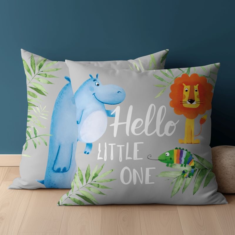 Roztomilý povlak na vankúšik s motívom hrošíka s dvoma rozdielnymi obrázkami — každá strana má vlastný dizajn. Zapínanie na zips umožňuje jednoduché nasadenie a snímanie povlaku. 100 % bavlna zaručuje komfort, priedušnosť a jemný pocit na dotyk.