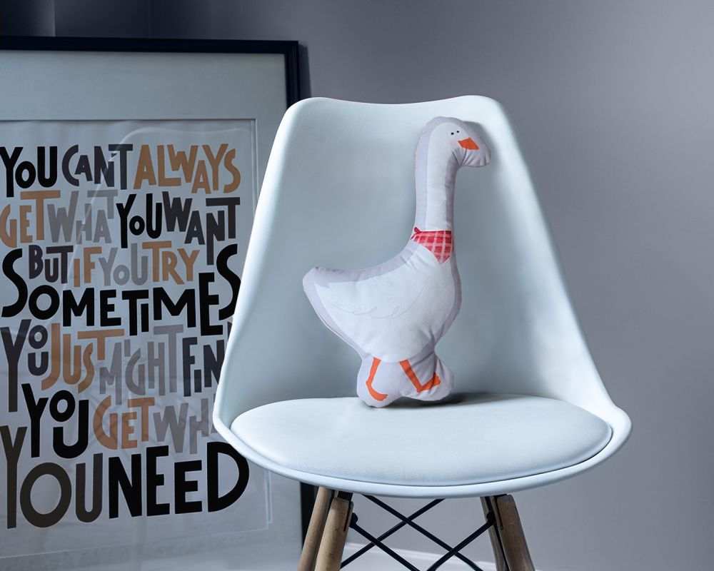 Roztomilý dekoratívny vankúšik v tvare husy – ideálny ako doplnok do detskej izby. Mäkký mikroplyšový poťah poskytuje jemný pocit na dotyk, zatiaľ čo pevná výplň zaručuje, že vankúšik si udrží svoj tvar aj pri častom objímaní. Vďaka tvarovanému dizajnu má charakteristickú siluetu husy, ktorá dodáva šarm a originalitu.