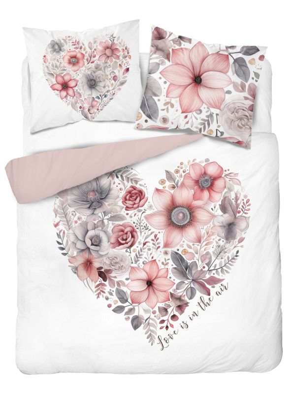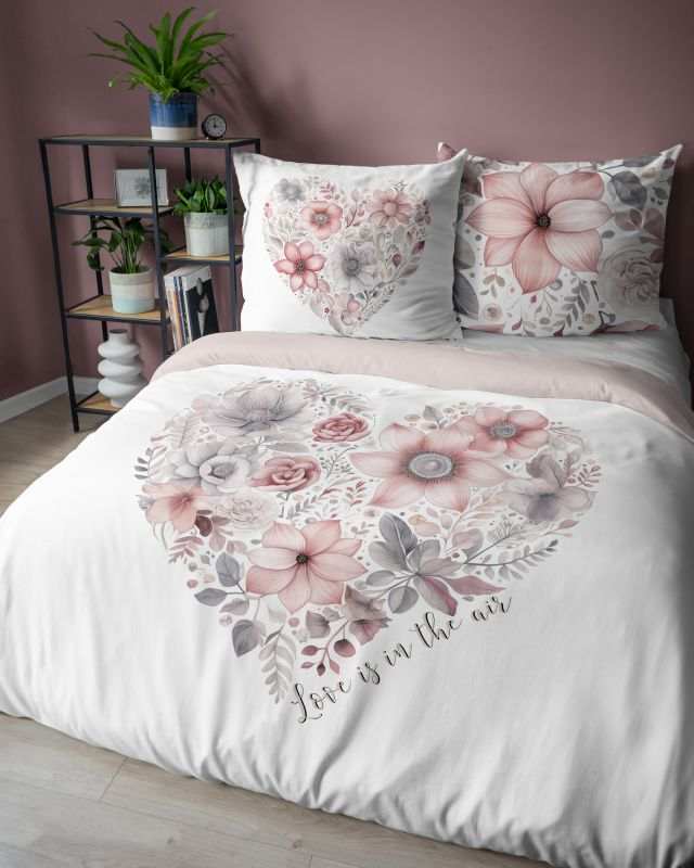 Tieto elegantné francúzske obliečky s romantickým motívom kvetinového srdca sú ideálne pre dvojlôžkové postele. Vyrobené z jemné bavlny, ponúkajú hladký a jemný povrch, vďaka čomu sú veľmi príjemné na dotyk a vhodné pre citlivú pokožku.