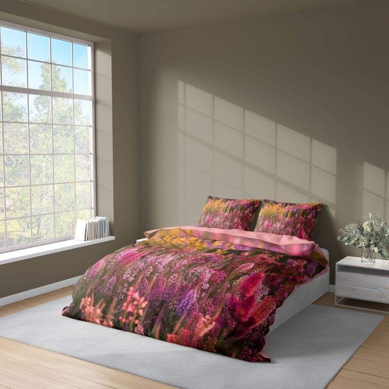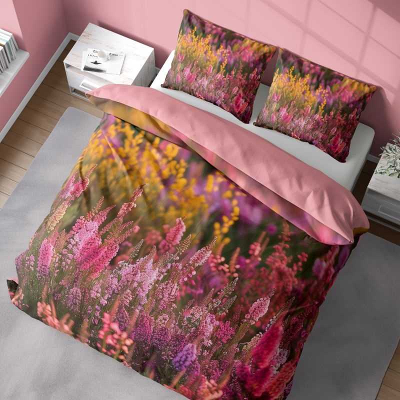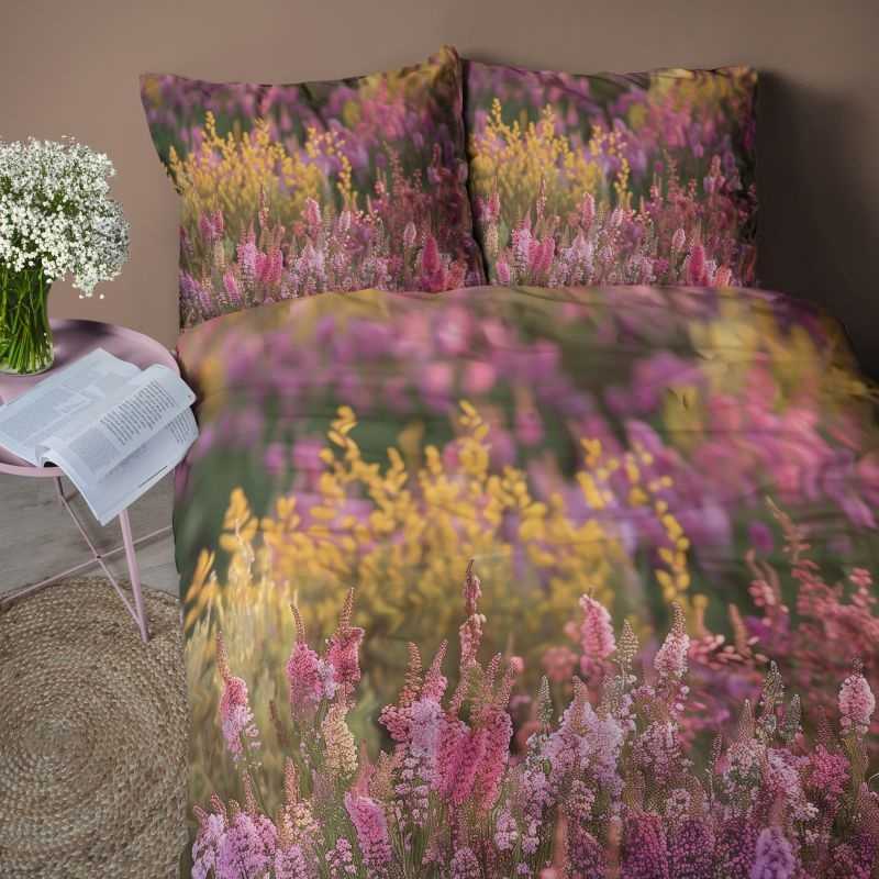 Francúzske obliečky z jemného mikrovlákna s 3D motívom vresovej lúky prinášajú do spálne prírodnú eleganciu. Materiál 100 % polyester je mäkký, hladký a veľmi pohodlný, zároveň nenáročný na údržbu – nekrčí sa, rýchlo schne a nemusí sa intenzívne žehliť. Vďaka kvalitnej potlači vyniknú sýte farby a realistické detaily kvetov aj po mnohých praniach. Formát 220 × 200 cm je ideálny pre veľké prikrývky alebo spoločné spaní, poskytuje pohodlie aj estetický vzhľad. Zapínanie na zips zaručuje jednoduché prezliekanie a spoľahlivé upevnenie vankúšov aj prikrývky.