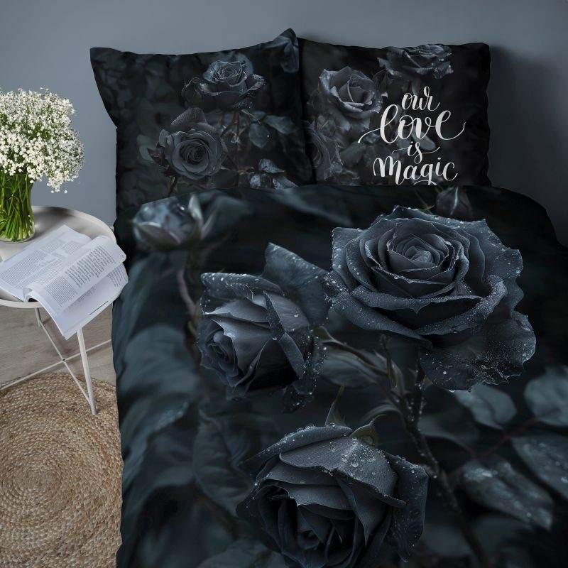 Francúzske obliečky s realistickým 3D motívom ruží v čiernych farbách prinášajú do spálne luxusný a dramatický vzhľad. Jemný mikrovláknový materiál je hebký, hladký na dotyk a nenáročný na údržbu — nekrčí sa, rýchlo schne a farby si udržia intenzitu aj po viacerých praniach. Vďaka potlači vysokej kvality vyniknú detaily okvetných lístkov, tiene a hĺbka motívu. Formát 220 × 200 cm je vhodný pre veľké prikrývky a spoločný spánok, poskytuje komfort aj štýl. Zapínanie na zips zabezpečuje jednoduché prezliekanie a pevné uchytenie obliečky aj vankúšov.