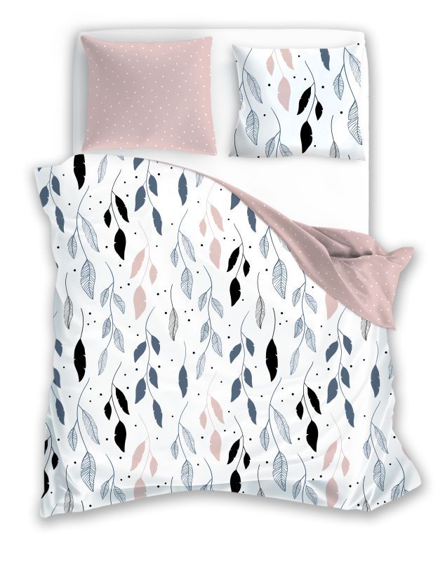 Bavlnené obliečky s motívom jemných lístkov na bielom podklade prinášajú do spálne pocit sviežosti a čistoty. Materiál zo 100 % bavlny je priedušný a príjemný na dotyk – vhodný aj pre citlivú pokožku. Zapínanie na zips umožňuje jednoduché prezliekanie bielizne.