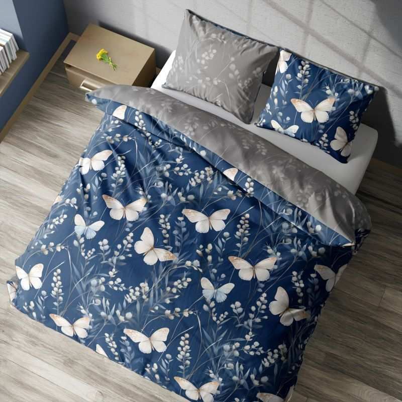Obliečky „Motýlikovia na modrej“ sú výbornou voľbou pre tých, ktorí hľadajú kvalitné obliečky s príjemným dizajnom a pohodlným materiálom vhodným na každodenné použitie.