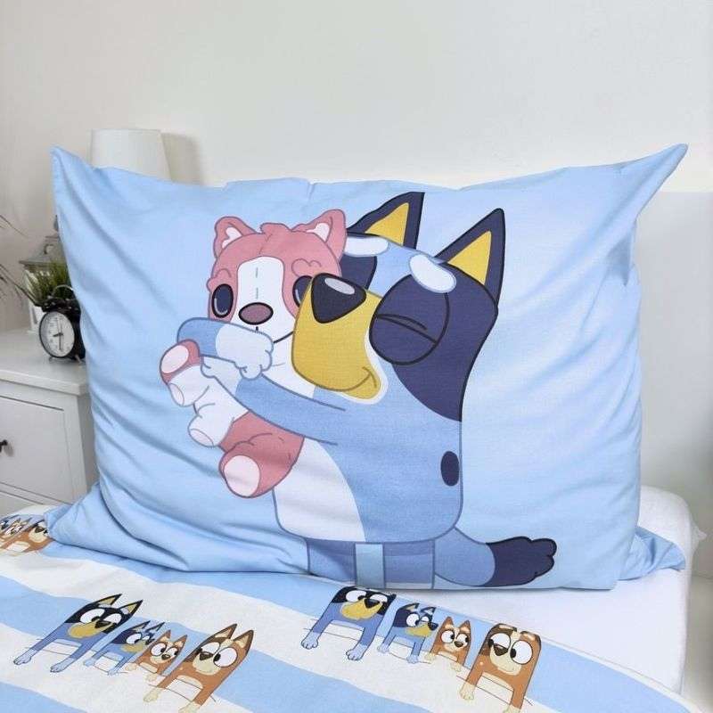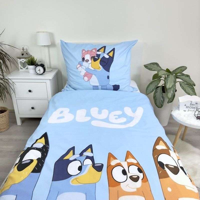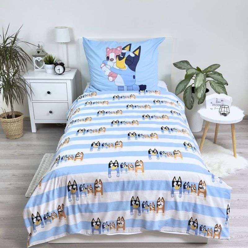Posteľné obliečky od výrobcu Jerry Fabrics sú vyrobené zo 100% bavlny, sú jemné a príjemné na dotyk. Bavlnené obliečky sú určené na veľkú posteľ: návliečka na paplón má rozmer 140x200 cm a obliečka na vankúš 70x90 cm. Návliečky s motívom Bluey majú z každej strany inú potlač a praktické zapínanie na zips. Môžete ich prať na 40°C, ideálne naruby.
