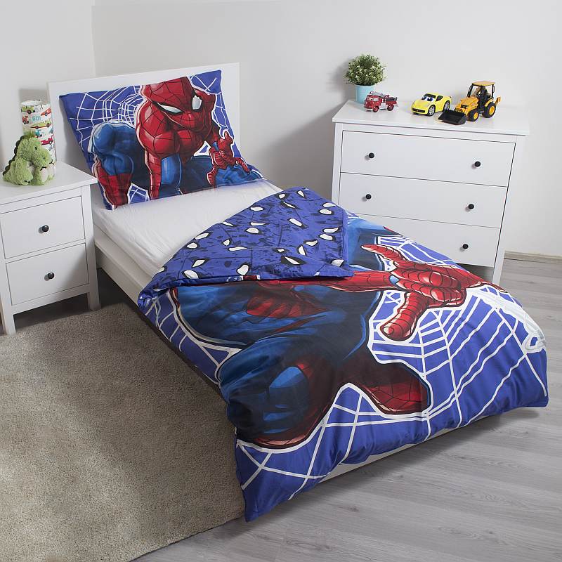 Detské obliečky s motívom Spider‑Mana od JERRY FABRICS sú ideálne pre malých superhrdinov. Predná strana zobrazuje akčný obrázok Spidermana, zatiaľ čo zadná strana ponúka jemný doplnkový vzor. Navyše obsahujú svietiaci efekt – po vystavení svetlu jemne žiaria v tme, čo prináša hravý a magický prvok počas nočného odpočinku.