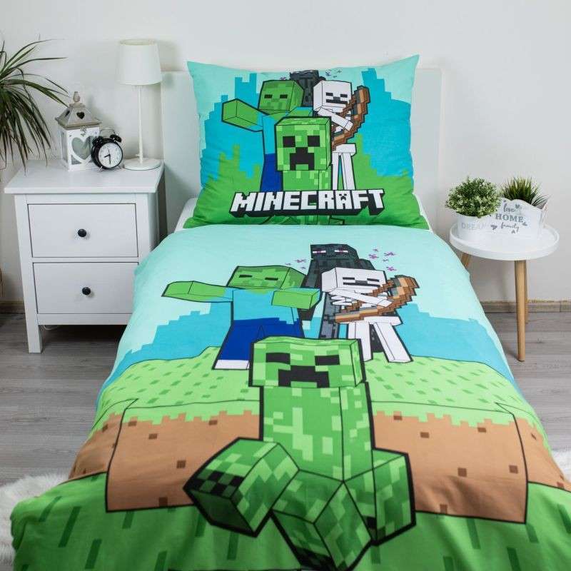 JERRY FABRICS obliečky Minecraft Mobs here sú skvelou voľbou pre malých aj veľkých fanúšikov hry — kombinujú pohodlie bavlny s atraktívnym herným dizajnom, ktorý oživí každú izbu.